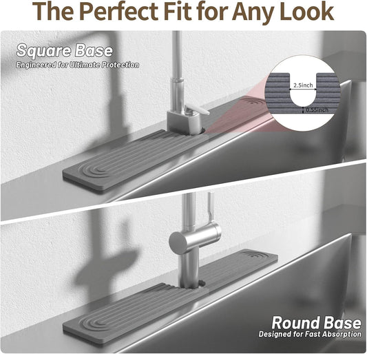 Faucet Mat for Kitchen Sink, Diatomite Stone Drying Sink Protectors, Bathroom Faucet Splash Guard, Quick Dry Water Absorbing, Non-Slip Stone Tray for Kitchen Counter, Grey, 15.7" x 3.9"