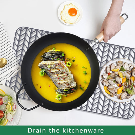 GUUKIN Sink Protectors for Kitchen Mat - 30"x 16" Silicone Kitchen Sink Mat Grid for Bottom of Farmhouse Stainless Steel Porcelain with Center Drain(Grey)