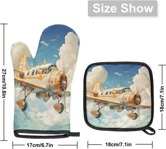 Airplanes Oven Mitts and Pot Holders Sets, 2 Pcs Decorative Kitchen Oven Glove for Cooking