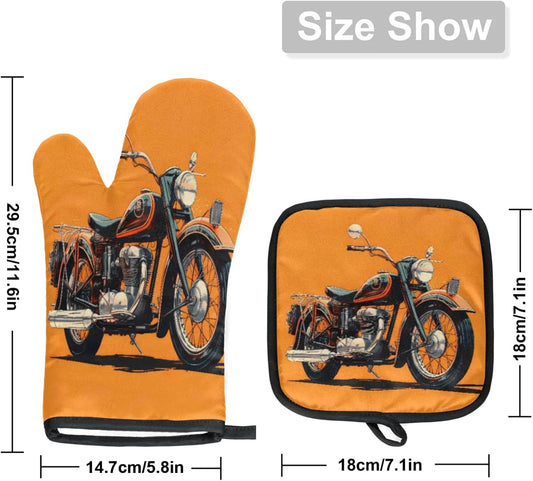 Motorcycle Theme Oven Mitts and Pot Holders Sets, 2 Pcs Decorative Kitchen Oven Glove for Cooking