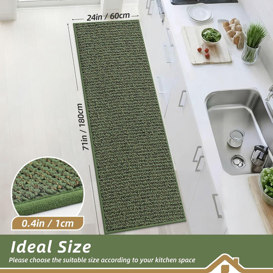 BEQHAUSE Kitchen Runner Rugs 24"x72", Non-Slip Kitchen Mats for Floor, Super Absorbent and Stain Resistant Kitchen Rug, Machine Washable Rugs for Kitchen, Hallway, Laundry & Sink, Green