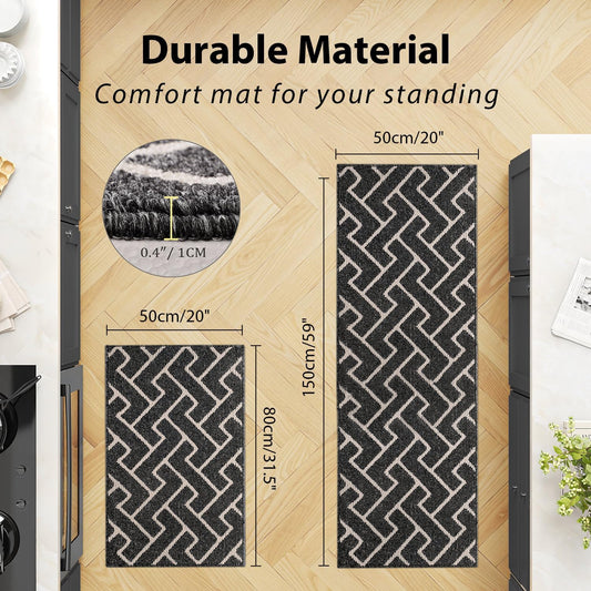 hicorfe Kitchen Rugs and Mats Sets,Non-Slip 2 Pieces Absorbent 100% Polypropylene Rug,Comfort Kitchen Runner Mat,Washable for Kitchen,Sink,Laundry(20" x 31.5" Plus 20" x 59",Black)