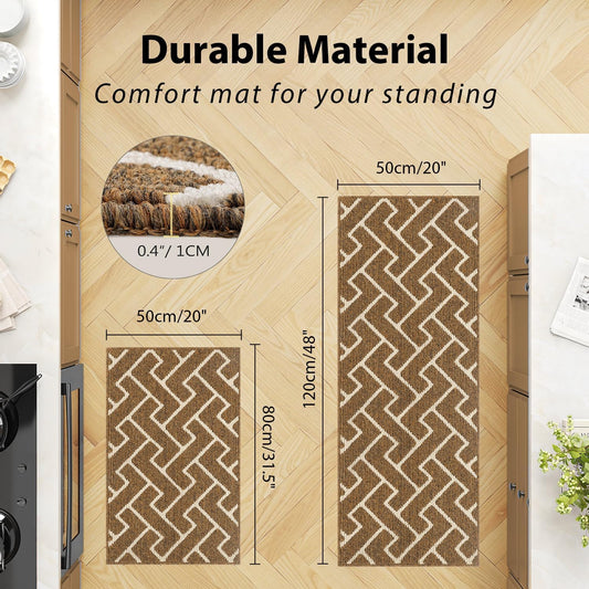hicorfe Kitchen Rugs and Mats Sets,Non-Slip 2 Pieces Absorbent 100% Polypropylene Rug,Comfort Kitchen Runner Mat,Washable for Kitchen,Sink,Laundry(20" x 31.5" Plus 20" x 48",Brown)