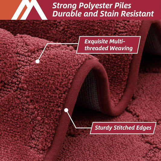 COSY HOMEER Soft Kitchen Rugs [2 PCS] for in Front of Sink Super Absorbent Kitchen Floor Mats and Mats 20x30 Inch/20X48 Non-Skid Kitchen Mat Standing Mat Washable,Polyester,Red