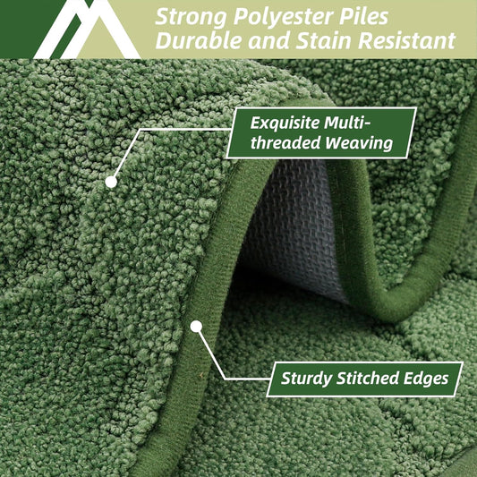 COSY HOMEER Soft Kitchen Rugs [2 PCS] for in Front of Sink Super Absorbent Kitchen Floor Mats and Mats 24x35 Inch/24X60 Non-Skid Kitchen Mat Standing Mat Washable,Polyester,Green