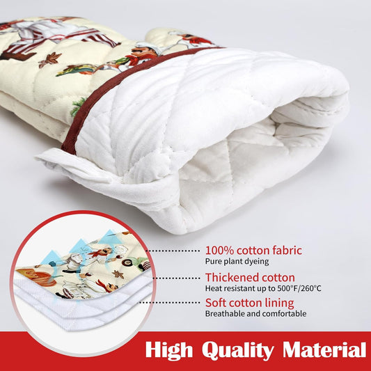 Chef Oven Mitts and Pot Holders Sets 2Pcs, 100% Cotton Heat Resistant, Extra Long Oven Gloves Potholder for Kitchen Cooking Baking Decoration