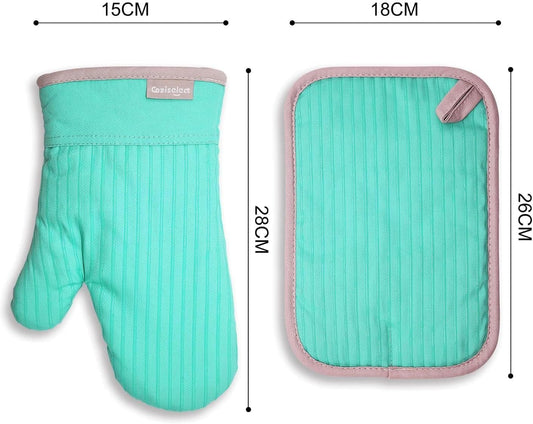 4Pcs Oven Mitts and Pot Holders, Heat Resistant Oven Mitts Set with Pothholder,Heat Resistant Microwave Gloves Safe for Baking,Cooking, BBQ