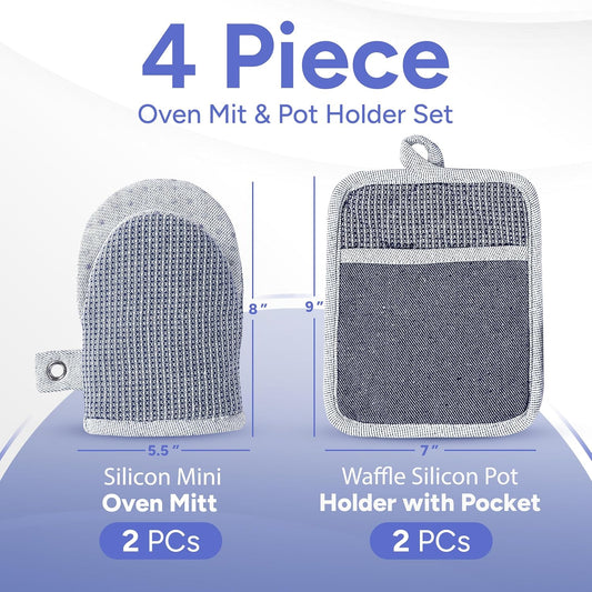Casa Platino Heat Resistant Oven Mitts & Potholders, 4-Piece – Oven Mitts and Pot Holders Sets for Baking, Grilling & Microwave – Withstands Heat Up to 500°F, Non-Slip, Machine Washable – Grey