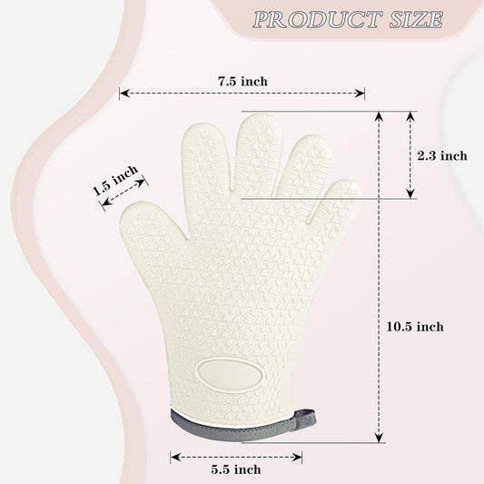 Oven Mitts with Fingers, Heat Resistant 500°F, Waterproof & Non-Slip Kitchen Gloves for Baking, Grilling, Cooking.5-Finger Design with Soft Lining, Hanging Hook,Milky White