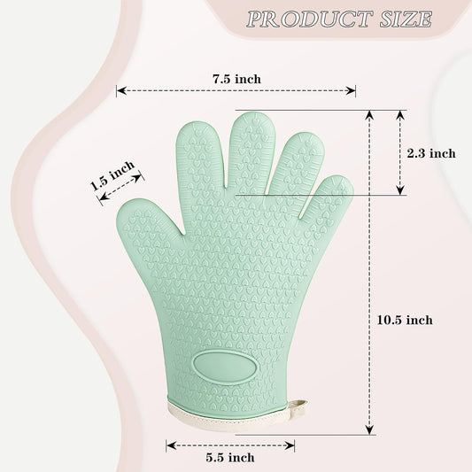 Oven Mitts with Fingers, Heat Resistant 500°F, Waterproof & Non-Slip Kitchen Gloves for Baking, Grilling, Cooking.5-Finger Design with Soft Lining, Hanging Hook,Mint Green