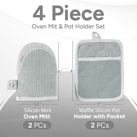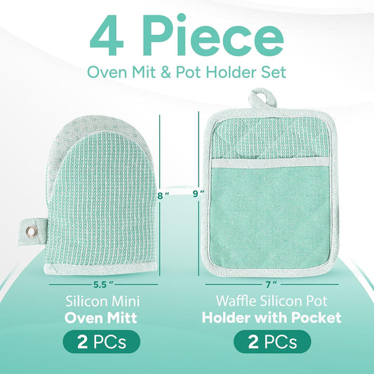 Casa Platino Heat Resistant Oven Mitts & Pot Holders, 4-Piece – Oven Mitt for Baking & BBQ, Potholders for Kitchens – Withstands Heat Up to 500°F, Soft, Durable & Non-Slip – Sage