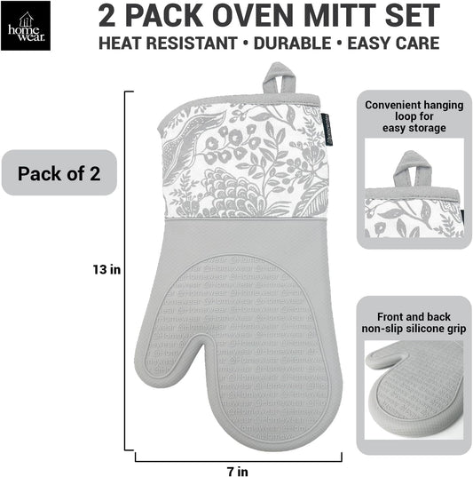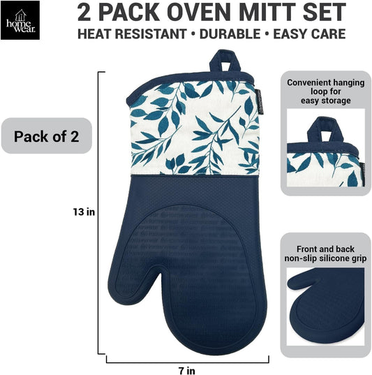 Delaney Silicone Oven Mitts Set - Extra Long, Heat Resistant Kitchen Gloves, Non-Slip Holders for BBQ, Baking, Cooking Essentials, Sage & Herbs, Kitchen Decor, Oven Gloves, New Home Gifts