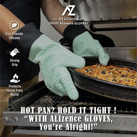 Silicone Oven Gloves - Heat Resistant, Barbecue, Reusable, Waterproof, Cotton Lined Mitts - XL