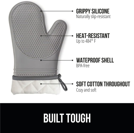 GORILLA GRIP BPA-Free Soft Silicone Oven Mitts, 14.5x8.3, Heat Resistant and Waterproof Cooking Gloves, Thick Cotton Lining, Flexible Gripping for Baking Grilling, Kitchen Potholders Set of 2, Gray