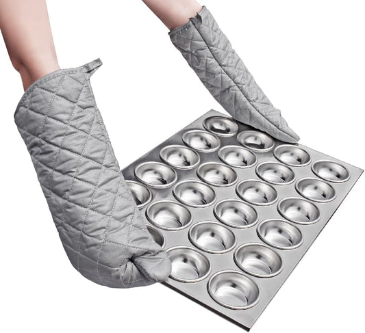 17 Inch Extra Long Heat Resistant Oven Gloves New Cotton Oven Mitts Kitchen Gloves High Temperature Cooking Tool BBQ Gloves (17" Silver)