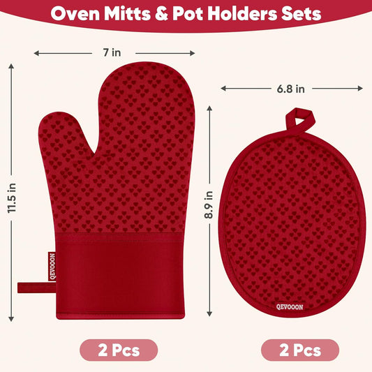 Oven Mitts and Pot Holders 4 Sets, Heat Resistant 500 ℉ Oven Mitt and Pot Holder,Oven Glove&Potholders with Non-Slip Silicone Surface,Kitchen Essentials for Cooking/Baking/BBQ-Red