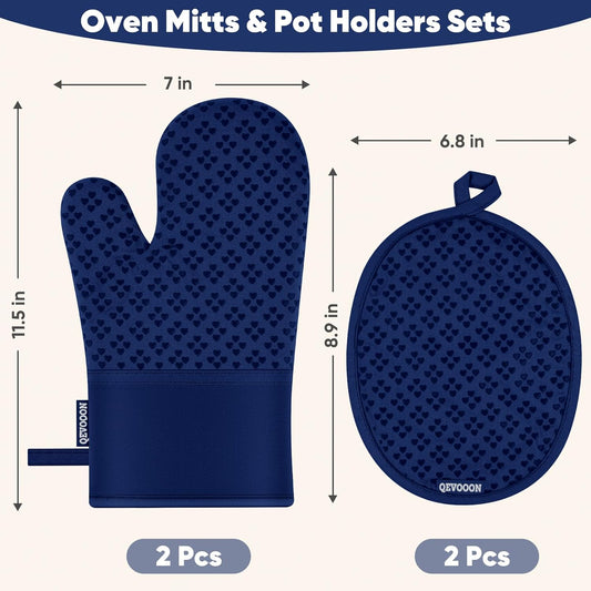 Oven Mitts and Pot Holders 4 Sets, Heat Resistant 500 ℉ Oven Mitt and Pot Holder,Oven Glove&Potholders with Non-Slip Silicone Surface,Kitchen Essentials for Cooking/Baking/BBQ-Marine Blue