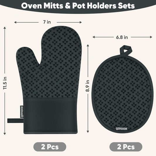 Oven Mitts and Pot Holders 4 Sets, Heat Resistant 500 ℉ Oven Mitt and Pot Holder,Oven Glove&Potholders with Non-Slip Silicone Surface,Kitchen Essentials for Cooking/Baking/BBQ-Grey