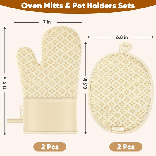 Oven Mitts and Pot Holders 4 Sets, Heat Resistant 500 ℉ Oven Mitt and Pot Holder,Oven Glove&Potholders with Non-Slip Silicone Surface,Kitchen Essentials for Cooking/Baking/BBQ-Beige