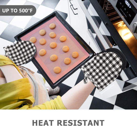 Qulable 1 Pair Short Oven Mitts - Silicone Kitchen Oven Gloves High Heat Resistant 500℉, Mini Oven Mits with Non-Slip Grip Surfaces and Hanging Loop for BBQ, Baking, Cooking and Grilling