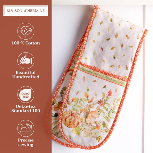 Maison d' Hermine Double Oven Mitts 100% Cotton 7"x35" Double Oven Mitt Heat Resistant BBQ Cooking Gloves with Loop, Baking, Grilling, Home, Kitchen, Handling Hot Pans (Pretty Autumn)