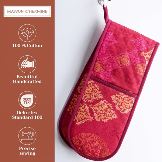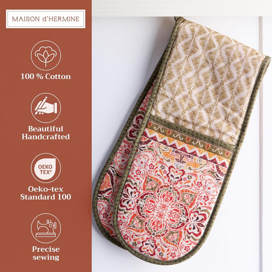 Maison d' Hermine Double Oven Mitts 100% Cotton 7"x35" Double Oven Mitt Heat Resistant BBQ Cooking Gloves with Loop, Baking, Grilling, Home, Kitchen, Handling Hot Pans (Kashmir Paisley)