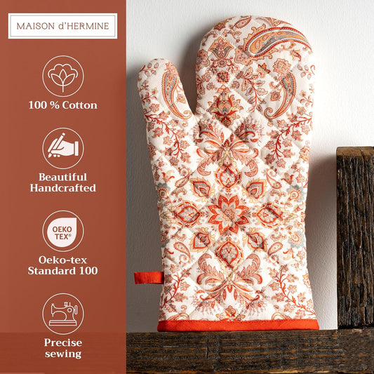 Maison d' Hermine Oven Gloves 100% Cotton Oven Mitt 7" x 13" with Loop Heat Resistant, BBQ, Cooking Gloves, Baking, Grilling, Kitchen, Handling Hot Pans (Pack of 1, Orient)