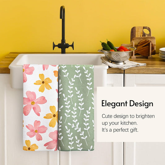 Kitchen Towels, 18" x 30" Tea Towels for Kitchen, Premium Microfiber Dish Towels for Kitchen Drying, Blush Garden Series, 2-Pack