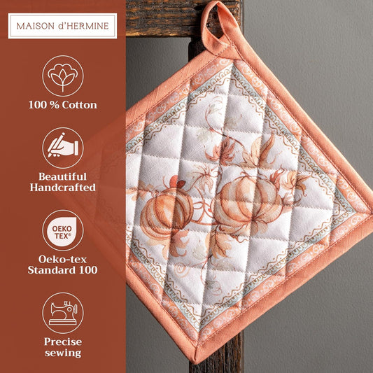 Maison d' Hermine Pot Holders 100% Cotton Heat Resistant Potholders 8" x 8" Hot Pads with Loop BBQ, Cooking, Baking, Grilling, Kitchen, Handling Hot Pans (Pack of 1, Giving Thanks)