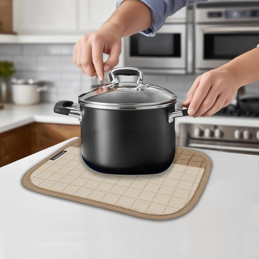 Native Fab Pot Holders and Oven Mitts Sets for Kitchen Heat Resistant- Hanging Non-Slip - 100% Cotton Oven Mitts and Pot Holders 4-Piece Set- Beige