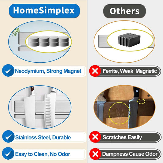 17 Inch Magnetic Knife Holder for Wall, Adhesive Knife Magnetic Strip No Drilling with 12 Hooks, Powerful Magnetic Knife Strip, Magnetic tool Holder for Kitchen Knives & Utensils (Silver)