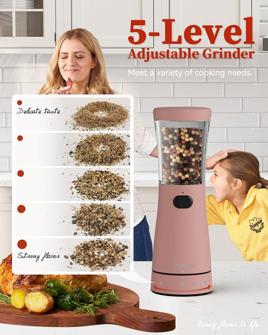 Pure Nature Salt and Pepper Grinder Set with rechargeable base. Premium Stainless Steel up-graded larger capacity with LED Lights, 5 Adjustable Coarseness, Refillable, Type-C Fast Charging.