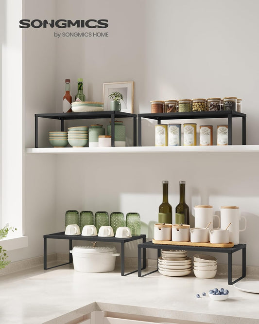 SONGMICS Spice Racks, Set of 2 Metal Cabinet Shelf Organizers, Countertop Organizers, Shelf Risers, Stackable, Expandable, Ink Black UKCS001B01