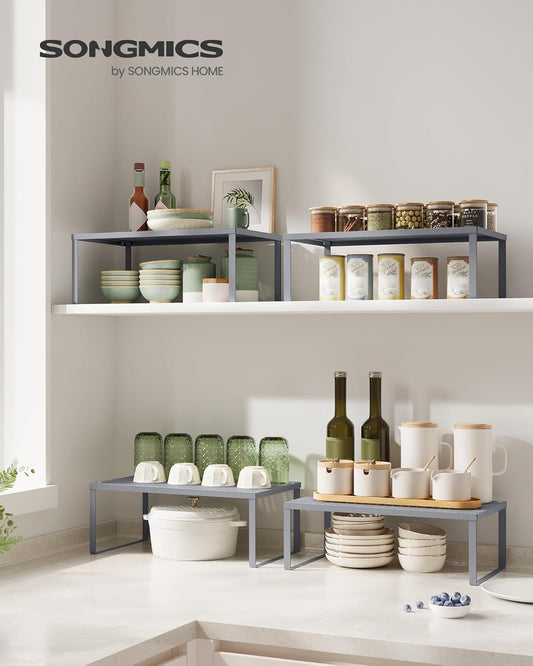 SONGMICS Spice Racks, Set of 4 Metal Cabinet Shelf Organizers, Countertop Organizers, Shelf Risers, Stackable, Expandable, Sage Green UKCS006C01