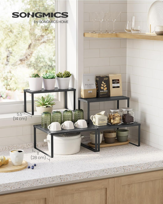 SONGMICS Spice Racks, Set of 2 Metal Cabinet Shelf Organizers, Countertop Organizers, Shelf Risers, Stackable, Expandable, Ink Black UKCS005B01