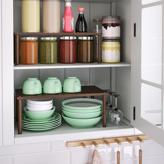 Cabinet Organizer Shelf(Set of 2),Kitchen Counter Shelves,Bamboo Spice Rack Countertop and Cabinet,Stackable Expandable,Large(Brown)