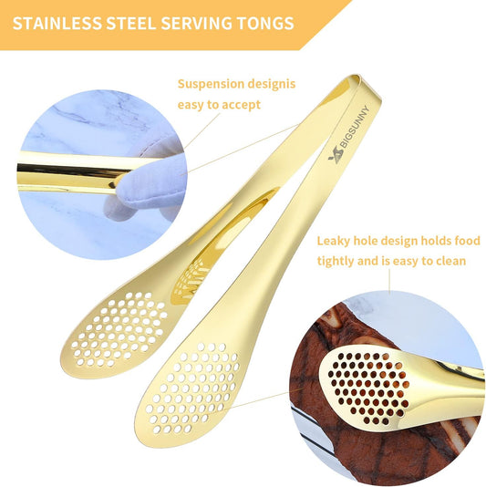 MSY BIGSUNNY 2 Pack Buffet Tongs, Gold-plated Stainless Steel Food Tongs Serving Tong