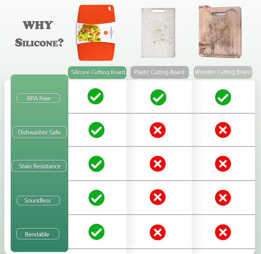 Thick Silicone Cutting Board 12.6'' x 9.1'' Juice Grooves Easy Grip Handle Dishwasher Safe-Orange