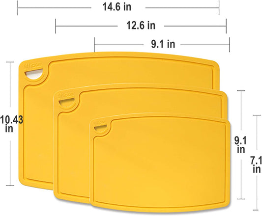 Silicone Thick Cutting Boards Mats Set of 3pcs Foldable & Flexible Design Juice Grooves Easy Grip Handle Dishwasher Safe for Kitchen,BPA free Silicone Cutting Mats-Yellow