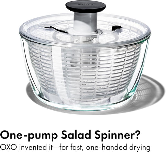 OXO Good Grips Glass Salad Spinner - Large 6.22-Qt Lettuce & Fruit Washer, Borosilicate Glass Bowl, BPA-Free, Easy Pump