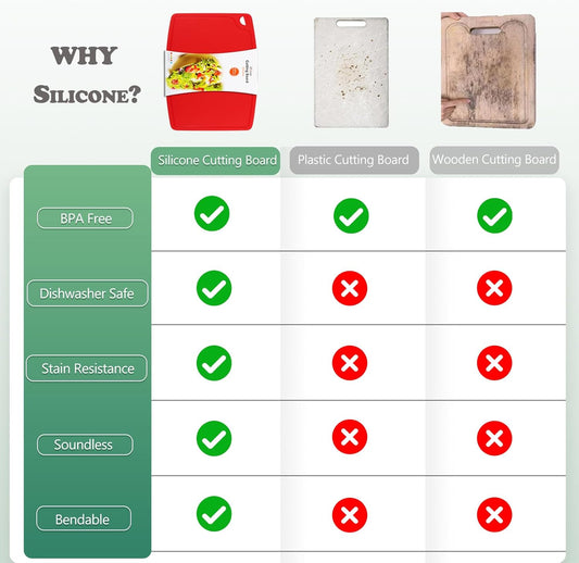 Thick Silicone Cutting Boards for Kitchen Silicone Chopping Boards/Mats Set of 2 Extra Large14.6''x10.43'', Mini 9.1”x7.1” Non-slip Deep Drip Juice Groove, Dishwasher Safe-Red