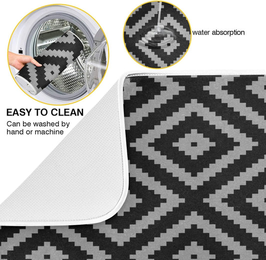 Super Absorbent Dish Drying Mat, Microfiber Fast-Drying Dish Mat, 16" x 18, Kitchen Dish Drying Pad, Black Moroccan Rhombus Plaid