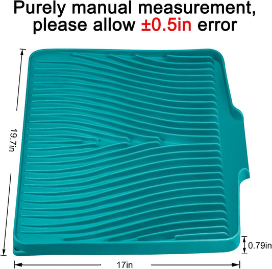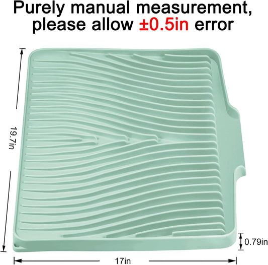 Silicone Dish Drying Mat, Stone Drying Mat for Kitchen Counter with Built-In Drain, Non-Slip Drain Pad with Built-in Drain, Heat Resistant Stone Drying Mat, 1Pcs 19.7" x 17", Mint