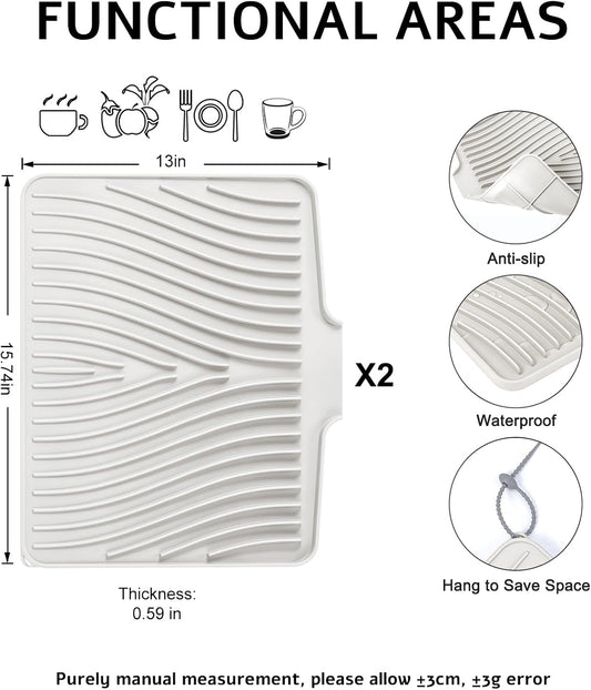 Dish Drying Mat, Stone Drying Mat for Kitchen Counter with Built-in Drain, Non-Slip Drying Matt Kitchen Counter, Heat Resistant Silicone Drying Mat, Dish Drying Pad, 2 Pcs(15.8"X 13", Cream)