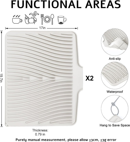 Dish Drying Mat, Stone Drying Mat for Kitchen Counter with Built-in Drain, Non-Slip Drying Matt Kitchen Counter, Heat Resistant Silicone Drying Mat, Dish Drying Pad, 2 Pcs (Cream 19.7" x 17")