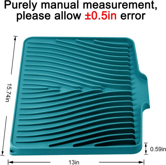Silicone Dish Drying Mat for Kitchen Counter, Dish Drying Pad, Non-Slip Drain Pad with Built-in Drain, Heat Resistant Stone Drying Mat(15.8" x 13", Mint)