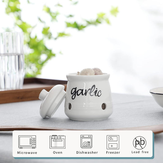 Garlic Keeper with Lid, Ceramic Mini Garlic Saver Container for Countertop, Farmhouse Kitchen Decor