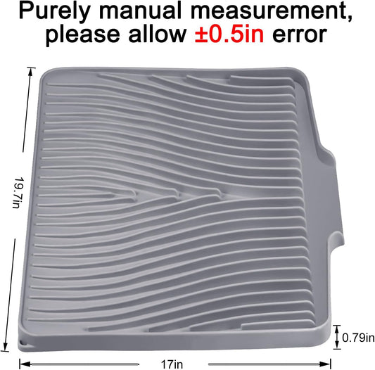 Silicone Dish Drying Mat, Stone Drying Mat for Kitchen Counter with Built-In Drain, Non-Slip Drain Pad with Built-in Drain, Heat Resistant Stone Drying Mat, 1Pcs 19.7" x 17", Grey