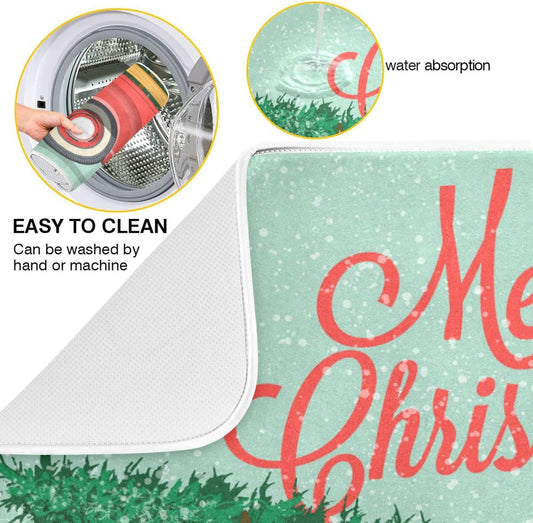 senya Super Absorbent Dish Drying Mat, Microfiber Fast-Drying Dish Mat, 16''x18'', Kitchen Dish Drying Pad, Merry Christmas Happy New Year Postcard
