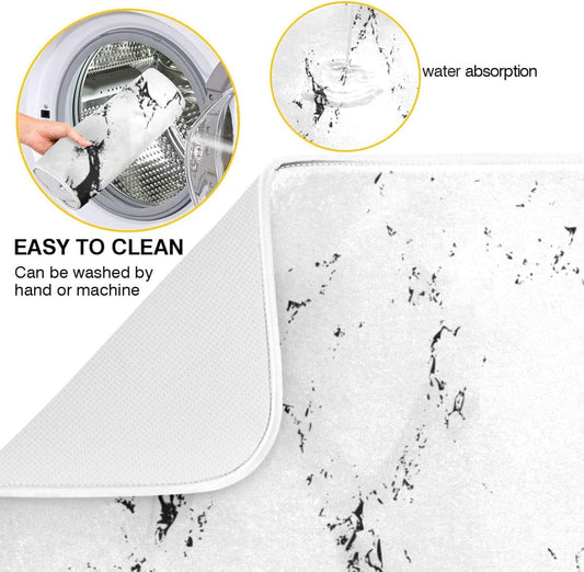 Super Absorbent Dish Drying Mat, Microfiber Fast-Drying Dish Mat, 24" x 18", Kitchen Dish Drying Pad, White Marble